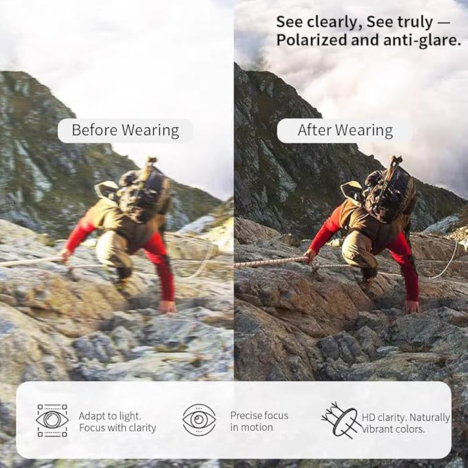 - Polarized UV400 Lenses – 100% UV Protection Polarized lenses block 100% UVA/UVB rays, reduce glare, and enhance visual clarity—perfect for bright outdoor environments.