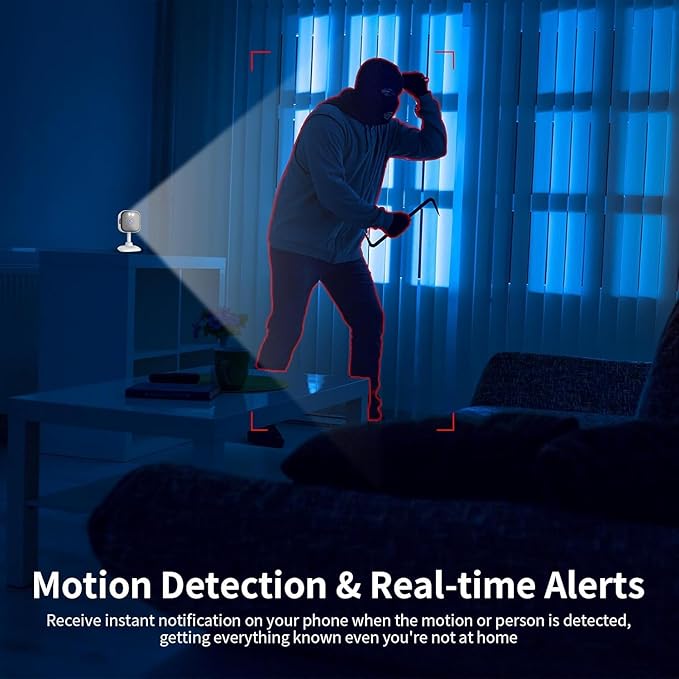 - 【Instant Alerts & Built-in Siren】 --- Advanced motion detection sends immediate alerts to your phone. Trigger the built-in siren remotely to scare off intruders, adding a powerful layer of protection to your home security cameras wireless indoor system.