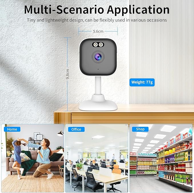 - 【Compact & Flexible Installation】 --- This indoor security camera boasts a compact design that blends into any room. Easily place it on a shelf or mount it on a wall for the perfect view of your pets or home, making setup of your wireless security system quick and effortless.