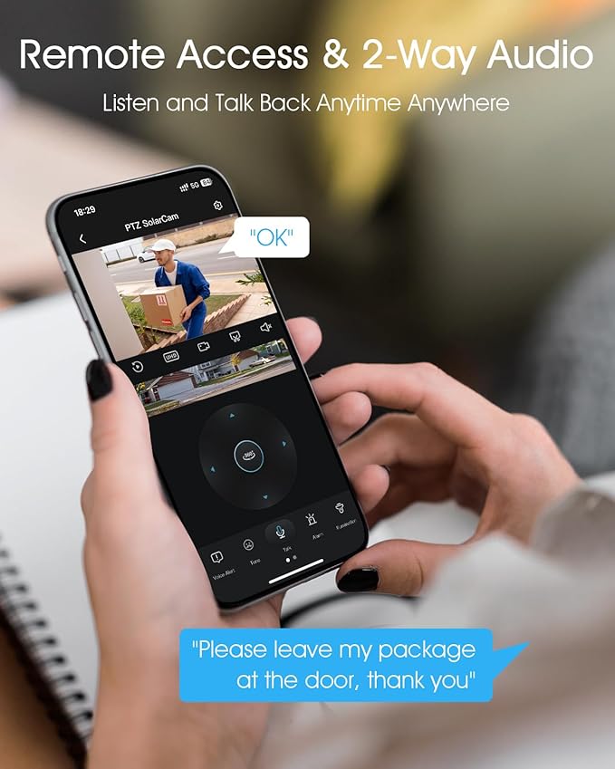 - Intelligent Motion Detection & Real-Time Alerts: This solar security cameras wireless outdoor has a built-in infrared motion detection sensor, it can clear analysis and recognition person, vehicle, pet and package.When a threat is detected, immediate mobile notifications can be received.This outdoor solar camera offers three alarm options: siren, spotlights, and app notifications.