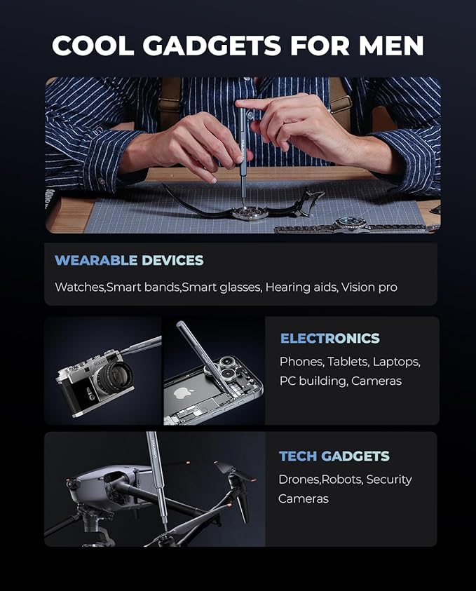 - 【42-in-1 Daily Repair Kit】-The VMYTH iDriver MS1 comes with 42 precision bits, 1× tweezers, 1× pry tool, 1× metal screwdriver handle, and 1× magnetizer—everything needed for daily repairs. It's perfect for fixing laptops, smartphones, cameras, drones, gaming consoles, and other electronics. Whether you're a DIY enthusiast or someone who likes to be prepared, this versatile kit covers all your repair needs.