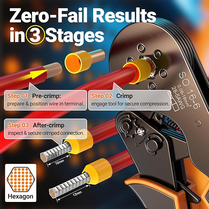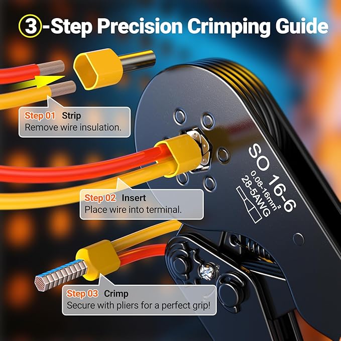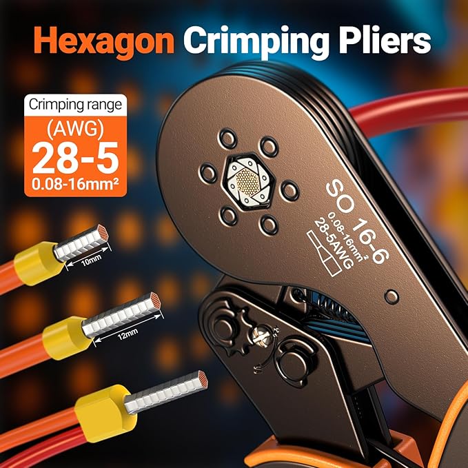- 【Ferrule Crimping Tool for 28-5 AWG】Hexagonal crimping pliers for AWG 28-5 cable end-sleeves.ferrule crimper suitable for insulated and uninsulated cable terminals