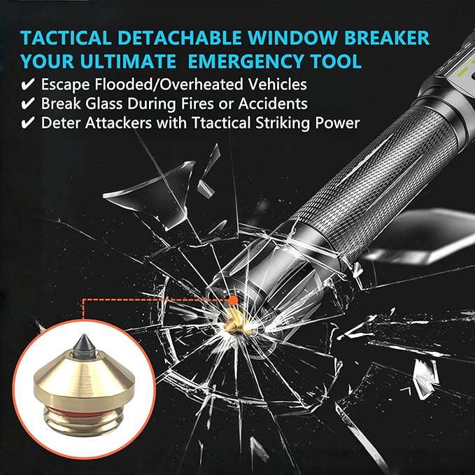 - ๐ใIPX5 WATERPROOF & SHOCKPROOF TACTICAL FLASHLIGHTใ The Super Bright rechargeable Flashlight is specially made of aviation grade aluminum alloy all over. With the thick rubber ring can do IPX5 level of waterproof, dust-proof, drop-proof. There is no problem to use the rechargeable Flashlights in extreme weather such as heavy rain and snowstorm. We also customize the tactical Flashlights with 4 parts of heat dissipation area, so the bright flashlight has good heat dissipation performance. Our tactical flashlight integrates a quick-detach window breaker at its tail cap. Perfect for: Vehicle distress, fire rescue, outdoor emergency response, self-defense protection.