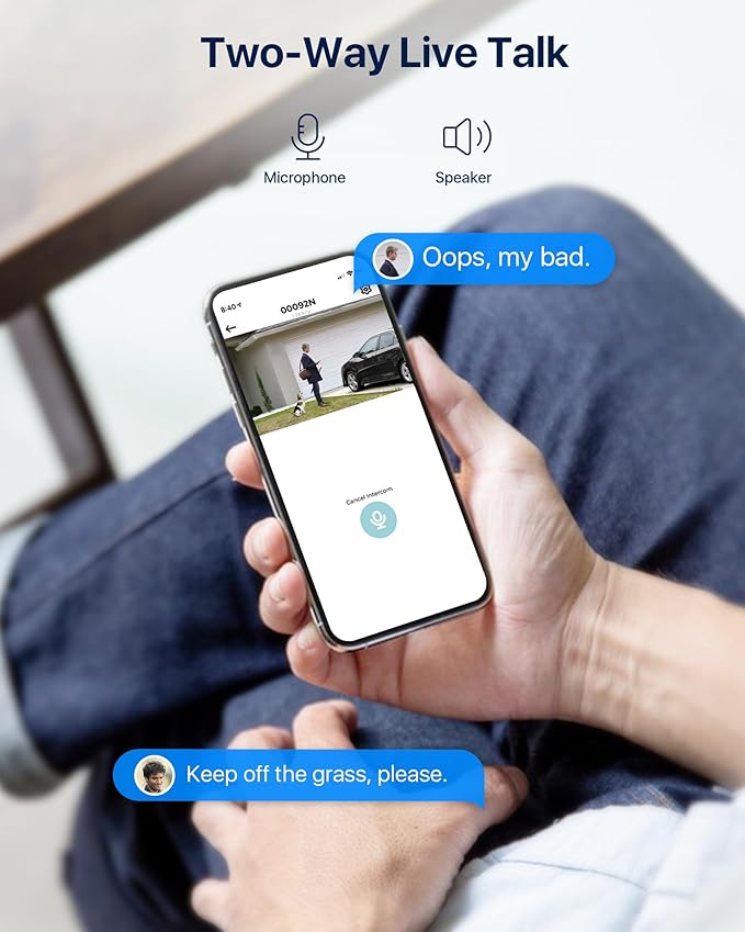 - (4). [ Pan-Tilt Remote View & Two-Way Audio ] __ Remotely control the 355° pan and 90° tilt to get a full 360° view with minimal blind spots. Use the "ZOSI Smart" app to monitor live video anytime, anywhere. Note that the camera supports only 2.4GHz Wi-Fi networks. With the built-in microphone and speaker, you can hear and talk back in real-time for family interaction.