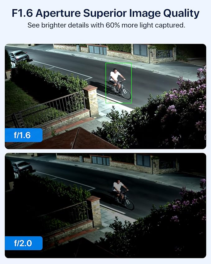 - (3). [ Smart Human Detection & Auto Tracking ] __ Equipped with a PIR sensor and advanced AI algorithms, the camera accurately detects human motion while filtering out irrelevant movements. When a person is detected, the spotlight and siren can be triggered to deter intruders, and the camera automatically tracks the person’s movement within the frame for enhanced surveillance coverage.