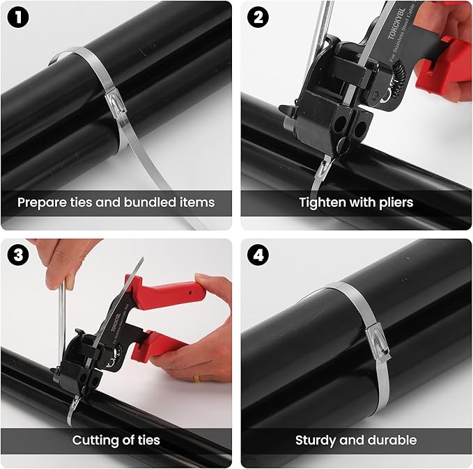 - Complete Self-Locking Kit: Includes 100pcs 11.8-inch stainless steel ties + 1 free zip tie remover tool for quick adjustments and clean, safe cuts with smooth edges