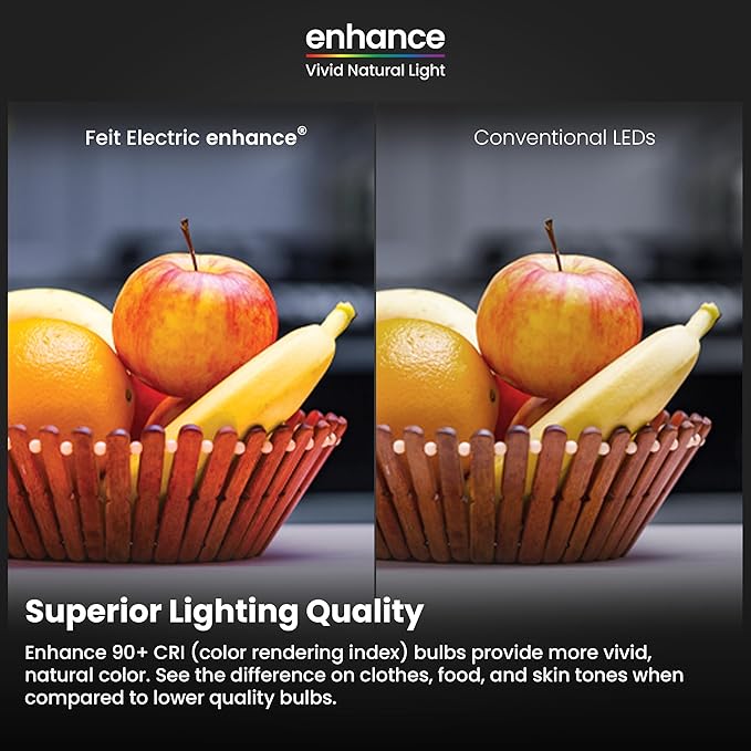 - DIMMABLE & HIGH CRI FOR VIBRANT, TRUE-TO-LIFE COLORS – These dimmable LED lights are compatible with most standard dimmer switches, allowing you to fine-tune brightness for any setting. The Enhance 90+ CRI (Color Rendering Index) ensures vibrant, natural color representation, making skin tones, artwork, and interiors look more vivid and realistic. Great for homes, offices, and retail spaces where quality lighting matters.