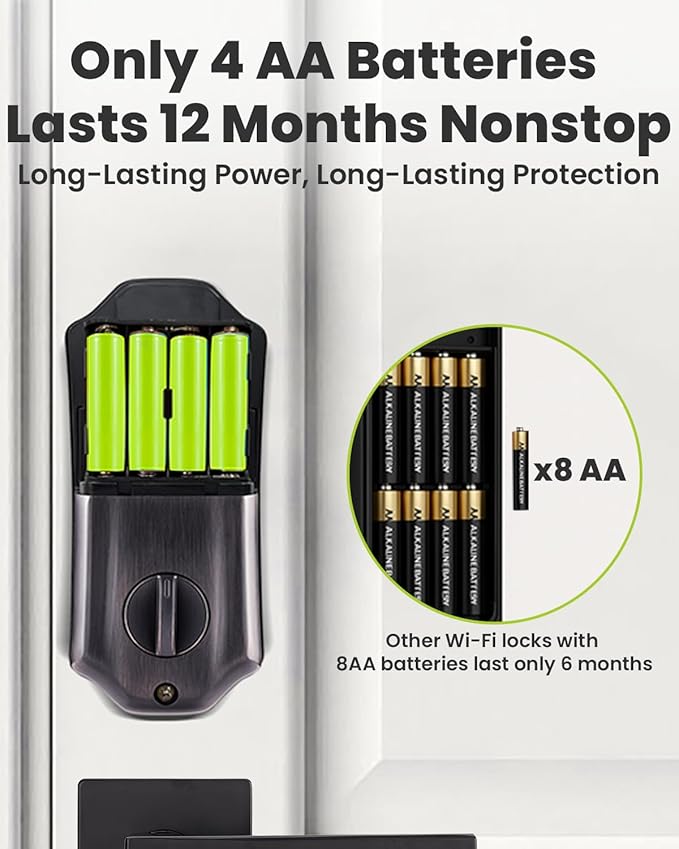 Keyless-Entry Deadbolt Smart Lock with Handle Set Waterproof IP56 Digital Exterior Locks for Front Door, WiFi Smartphone Control Fingerprint Door Lock with Keypad and Key Fob,Venetian Bronze