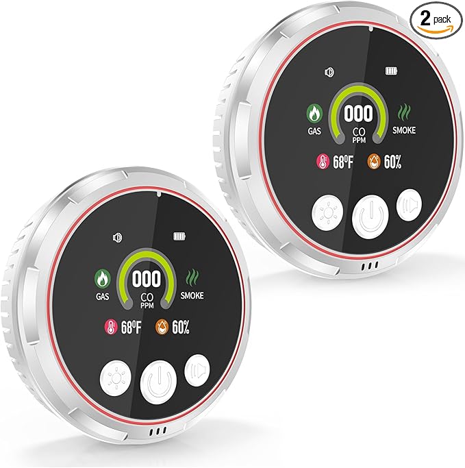 - ใ๐๐๐๐ฅ-๐ญ๐ข๐ฆ๐ ๐๐ข๐ฌ๐ฉ๐ฅ๐๐ฒ ๐จ๐ง ๐๐ ๐๐๐ซ๐๐๐งใfeatures a vibrant LCD color screen for real-time, night-readable monitoring of carbon monoxide (PPM), propane/combustible gas (%LEL), temperature (ยฐF), humidity (RH%), and smoke levels,this Carbon Monoxide Detectors ensures rapid response to emergencies and reliable 24/7 safety monitoring.