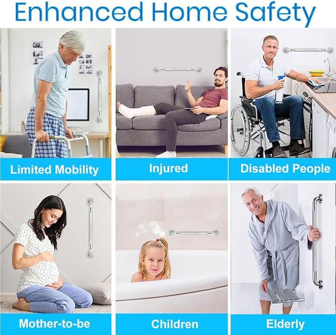 - NECESSARY SUPPORT: Life’s simple moments—standing up, moving around, stepping into the shower—can become challenging for many of us. But this shower grab bar for bathroom can easily provide them safe, effective and convenient help! It is suitable to install in Bathroom, Bathtub, Shower, Toilet, Kitchen and Bedroom to offer assistance getting up for Seniors and elderly, Expecting mothers, Kids, Injured, Handicapped and the people who have trouble in mobility, Anyone who values safety at home