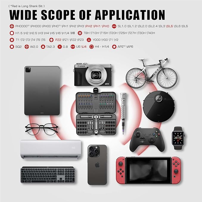 - Fun and functional – This precision screwdriver set includes 6 long-shank bits, 32 short-shank bits and 24 precision bits. This includes a wide selection of the essentials like Phillips, Flathead, Hex, and Torx bits. Magnetic components connect securely and adjust in length to reach tight or tricky spots