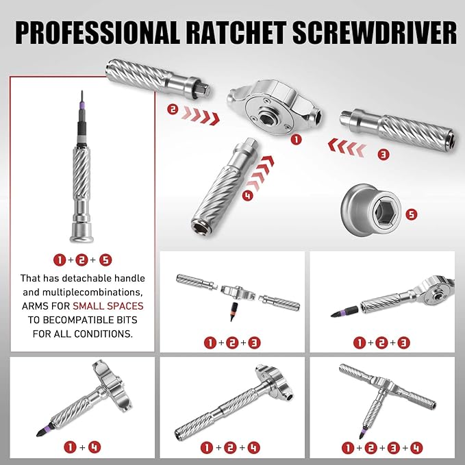 - A surprise gift for DIY enthusiasts – Our ratcheting screwdriver set is perfect gift for DIY enthusiasts. Small size is suitable for carrying around. The black phosphate coating has a beautiful industrial appearance. It comes with a sturdy storage box to clearly classify different bits, which is also convenient to carry when repairing outside and not easy to lose