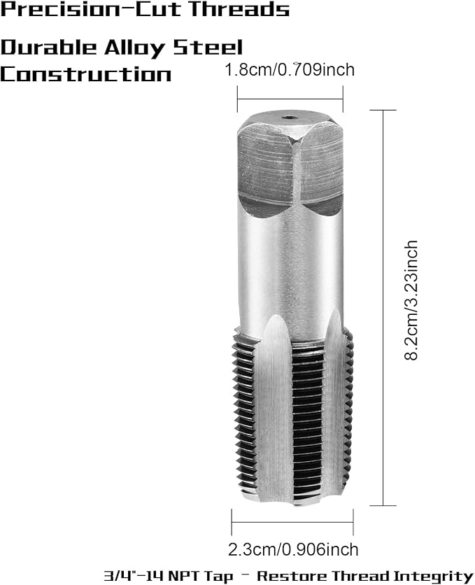 - Precise Thread Repair – The GCr15 alloy steel tap is perfect for chasing or rethreading 3/4" NPT pipe threads, often used in RV water tank ports for anode rods or heating elements.