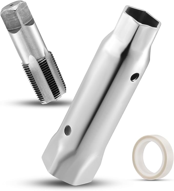 Jalja RV Water Heater Maintenance Tool Kit – Includes 3/4"-14 NPT Tap, Dual Hex Anode Rod Wrench (1-1/16" & 1-1/2"), and 197" Teflon Tape for Suburban Water Heaters