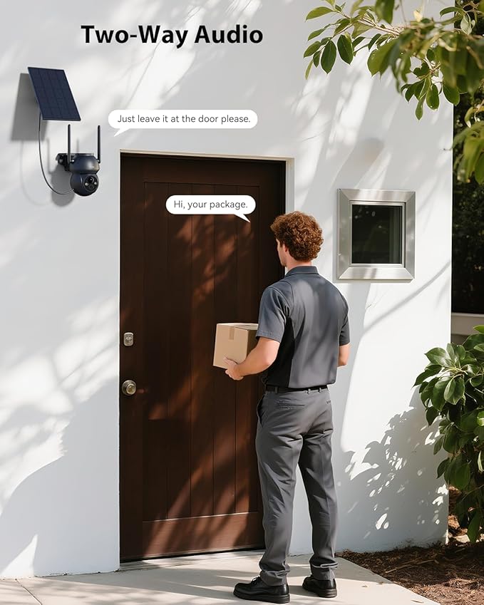 - 【Two-way Talk & Share Your Camera】Featuring a built-in microphone and speaker, this Solar WiFi Surveillance Camera enables real-time two-way communication with family or visitors via the app—ideal for greeting loved ones or deterring intruders. Easily share camera access with family members through the app, allowing remote property monitoring anytime, anywhere, even when abroad.