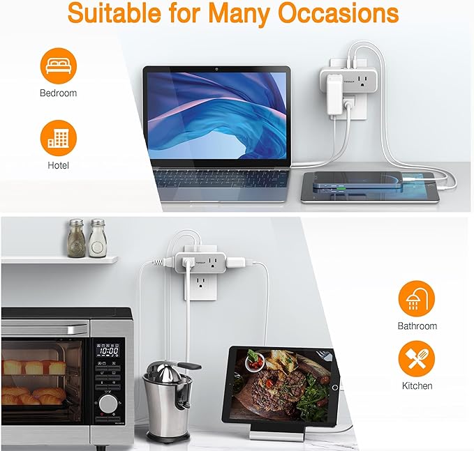 - Space Saving: With 4.29 x 1.77 x 1.18 inches compact designed, plug wall plug extender on the top of outlet without blocking the other below; Suitable for any occasions, especially for the bedroom, kitchen, or any area with limited outlets