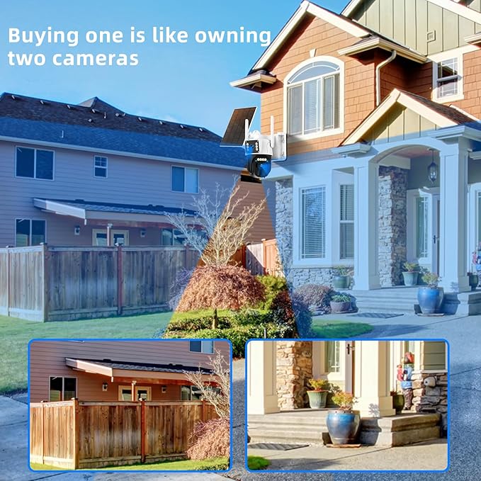 - 【Dual-band WiF & Solar-powered】Solar panel-powered, built-in high-capacity rechargeable battery wireless surveillance camera, avoid frequent removal of the camera to charge. Seamless switching of power supply in rainy and cloudy weather, 365 days monitoring without power. Support 2.4GHz/5GWiFi at the same time, stable signal without delay, easy to install.
