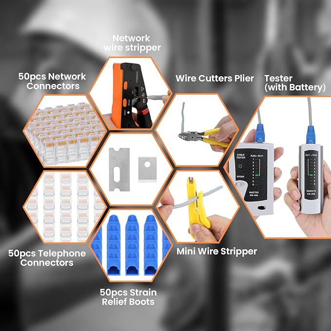 - 【Wide Application】The ethernet crimping tool kit is designed for telephone lines, alarm cables, computer cables, intercom lines, speaker wires, and thermostat wiring, just use it to repair your wires! After using, you can lock it for easier storage