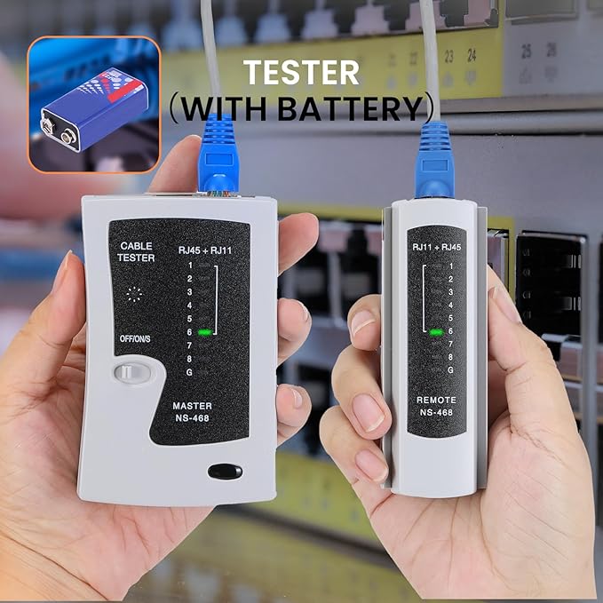 - 【All-In-One Ethernet Crimper】HARDELL ethernet crimper can be used for stripping, crimping and cutting. it equips with ethernet and telephone crystal head. Tester is delivered with battery, you can use it directly to test your job. replacement blades are also available, you don't need to buy new one after long use. Cable sheath make the wires more neat and beautiful.