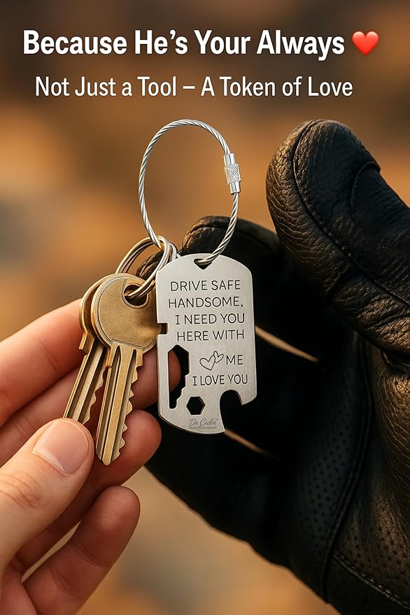- A Thoughtful Gift That Speaks Daily Love Crafted for daily use but designed with love in mind, this Drive Safe Handsome keychain multi-tool is more than just an accessory. Featuring an engraved message that reads, “Drive Safe Handsome. I Need You Here With Me. I Love You,” it serves as a daily reminder of your affection. Whether it’s your boyfriend, husband, or fiancé, this gift blends utility with emotional connection. At just 65 mm x 35 mm and 2 mm thick, it's a compact, sentimental everyday carry piece that never feels bulky but always feels meaningful.