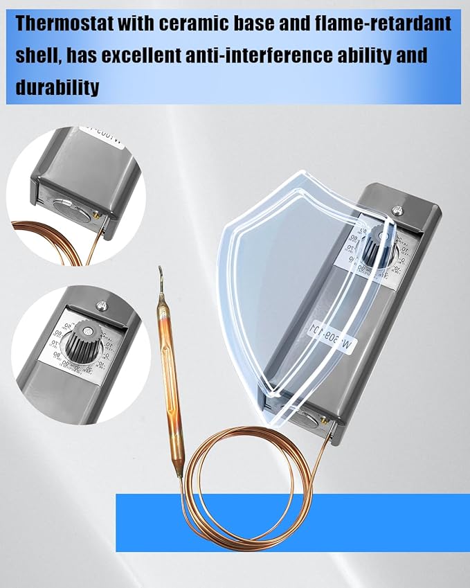 - Ceramic Base and Flame-Retardant Housing: Thermostat with ceramic base and flame-retardant shell, has excellent anti-interference ability and durability, and can operate stably even in harsh environments, ensuring long-term reliable performance