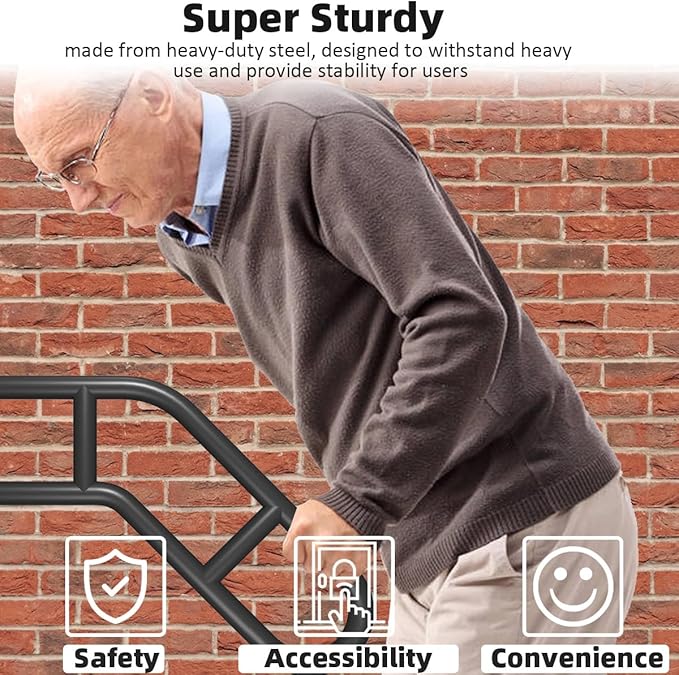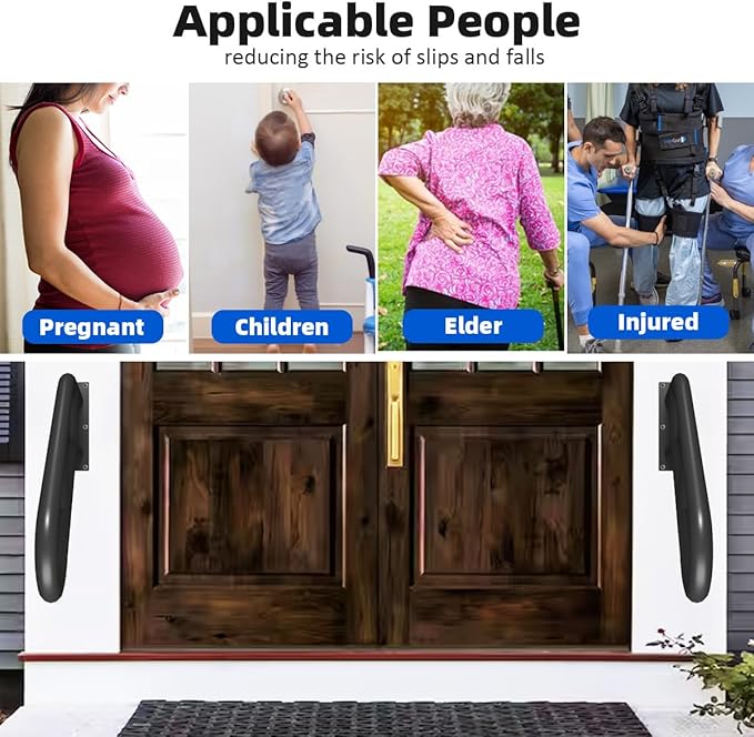 - Secure and Easy Up and Down Steps Handrail-The staircase handrail for outdoor steps provides reliable support and stability for moving up and down steps. Widely used wall-mounted handrails, such as Garage/Indoor Stair /Entry/Porch, the elderly parents/disabled people/pregnant women/children. Delicate welding and painting do not show any scratches, exceptionally convenient to pull yourself all over the steps.