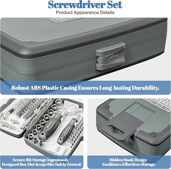 - 【Convenient Storage and Organization】: Presented in a compact and portable storage box with labeled slots for each tool, making easy to store, transport, and access whenever needed. Whether at home, in the garage, or on the go, this set ensures that your tools are always organized and ready for use.
