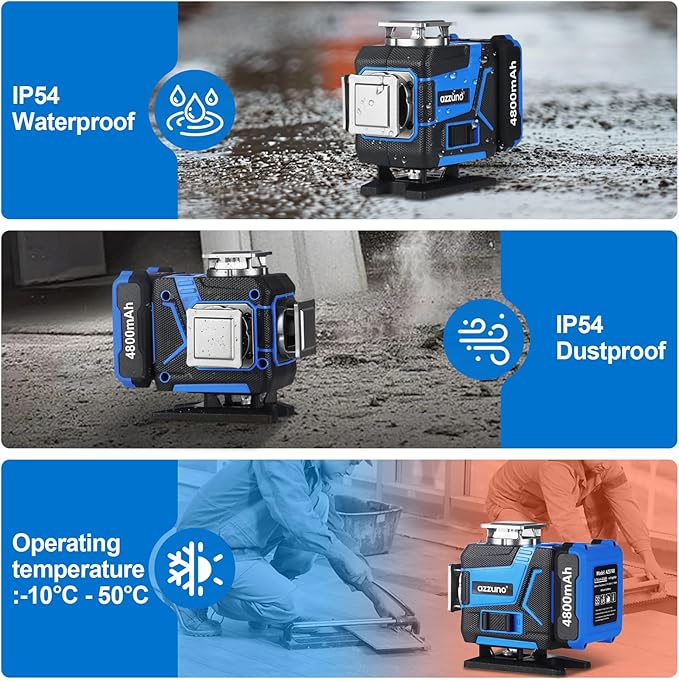 - 💡 【Long-Lasting Power】 – Equipped with two 4800mAh batteries for reliable performance and endurance. Comes with a USB-C to USB-C charging cable that fully charges in 2 hours. Tested results: one battery powers 2 lines for up to 10 hours, or 16 lines for up to 5 hours. Certified Class II (IEC/EN60825-1/2014) with output <1mW for safety and reliability.