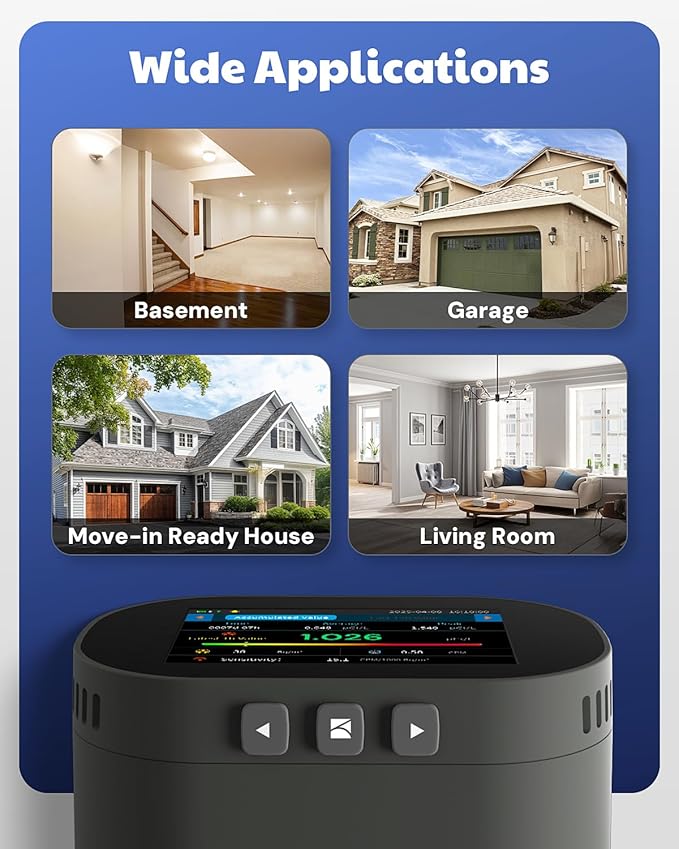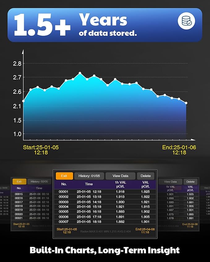 - Multiple Alert Modes: Color-coded bars intuitively display radon levels, flashing LED indicators combined with customizable audible alarms provide real-time warnings to safeguard your family's health