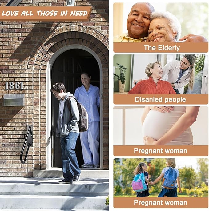 - 【CONVENIENT&VERSATILE APPLICATION】Our wall mount handrail could help and provide extra safety for people who have difficulty climbing stairs,like children, the elderly, pregnant women, the disabled etc. Both indoor and outdoor are suitable, you can install it for steps on front door, porches, balconies, gardens, hotels, garages