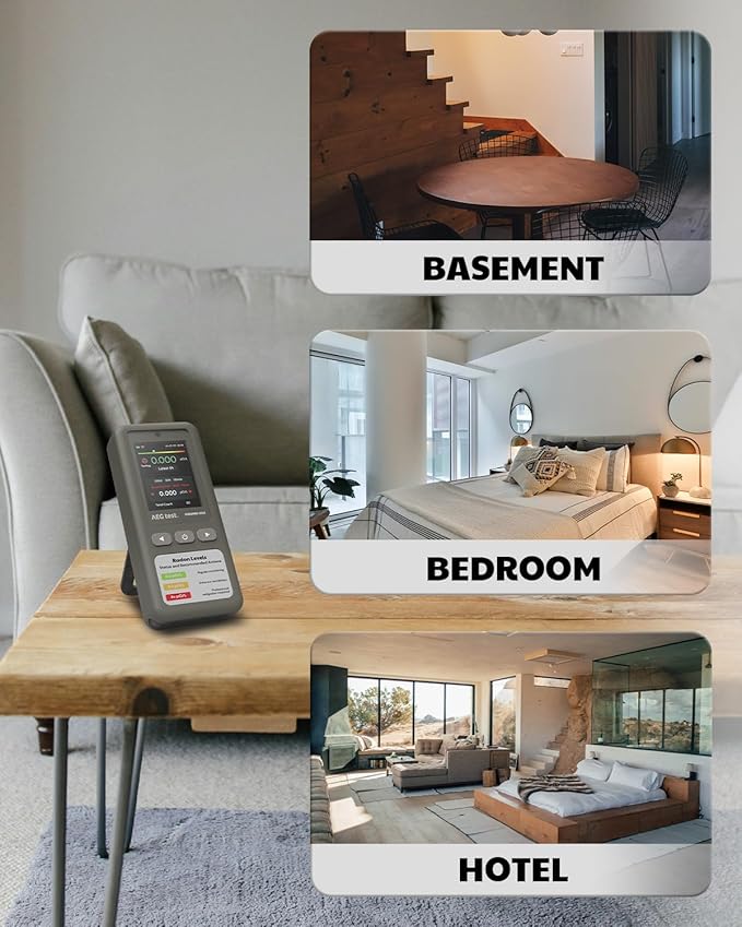 - Portable Radon Detector: AEGTEST HOUND-1011 is a compact, portable radon detector for continuous monitoring. It measures radon levels from 0.09 to 1000 pCi/L, supports switching between pCi/L and Bq/m³ units, ensuring reliable protection against harmful radon gas