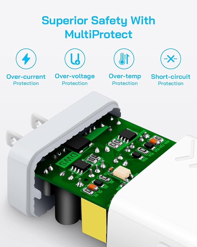 - [UL-Certified Safety Protection] Rest easy knowing your devices are protected by UL-certified safety features including built-in smart IC chip that prevents overheating, overcharging, and short circuits. The premium fire-resistant ABS+PC shell provides an extra layer of protection for worry-free charging day and night.