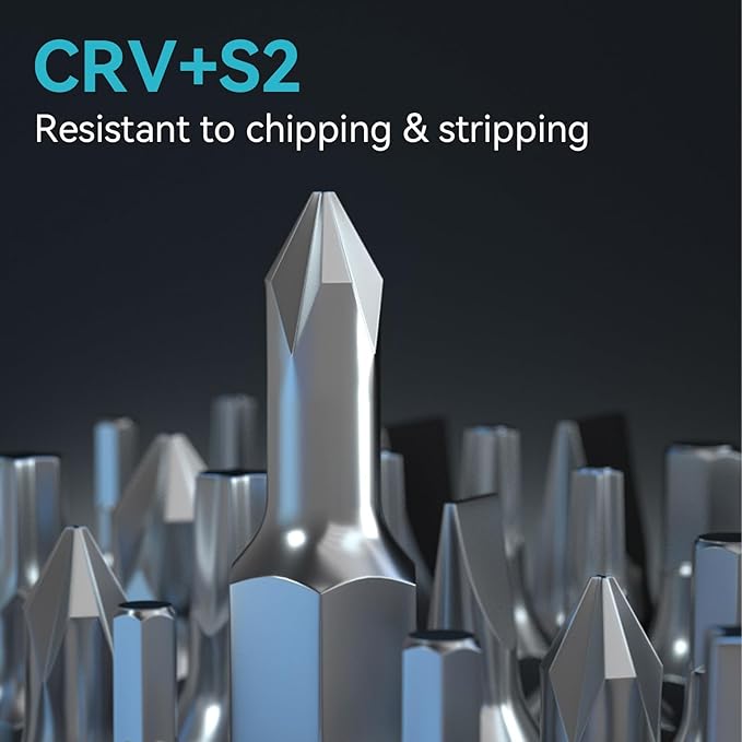 - [S2 & CR-V Steel Bits] - Every precision bit is crafted from high-grade steel. CR-V steel handles the vast majority of everyday needs with ease. S2 steel for frequent use, these bits offer superior durability.
