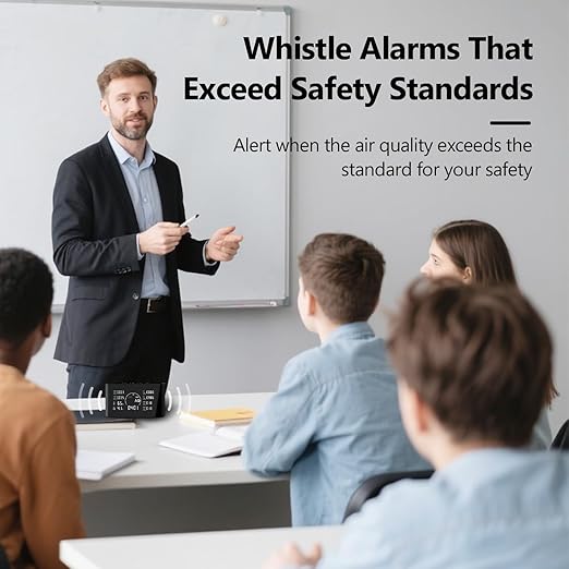 - SMART ALERTS & VISUAL WARNINGS – Receive immediate audible and visual alerts when CO2 exceeds 2000 ppm or other pollutants reach unsafe levels, helping you quickly respond to potential air hazards.