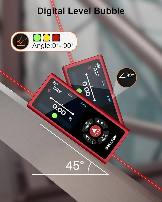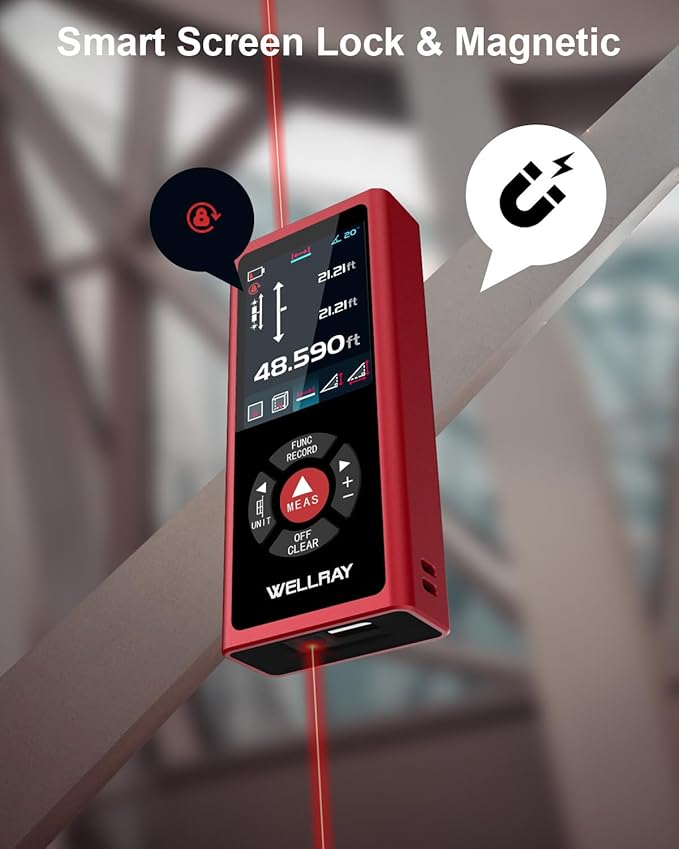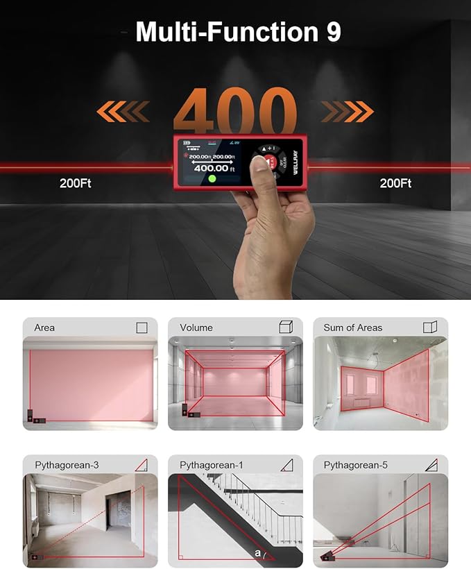 - WELLRAY Laser Distance Measuring Tool Aluminum Shell Bi-Directional 400 Ft-in Magnetic Lazer Measurement Rechargeable Laser Meter Measurer Large LCD Digital Tape Measure with Electronic Level Bubble