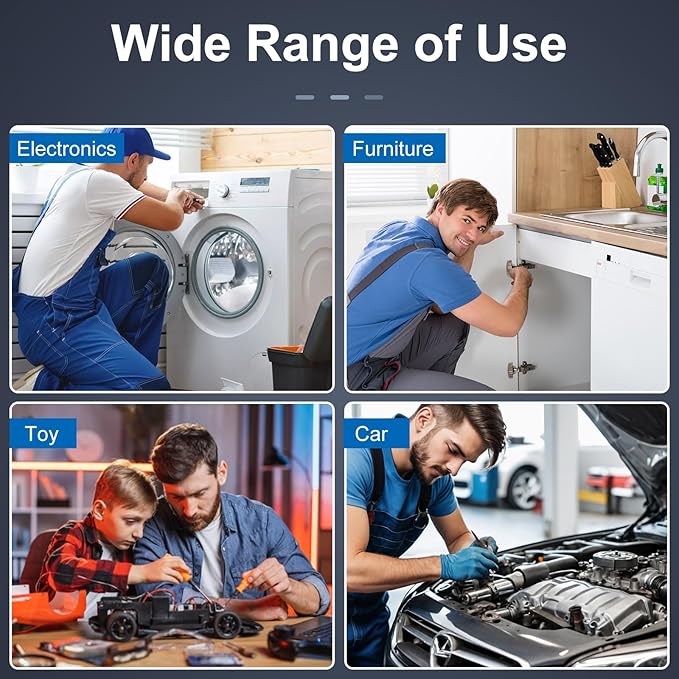 - Durability and Convenience: The bit and handle of the screw driver set kit are made of alloy, which are durable and not easy to rust. All bits and magnetic storage slots are labeled with model numbers, and they can be magnetically attracted directly when being placed. The T handle can be adjusted to various distances, making it easy to reach the screws in the narrow corners