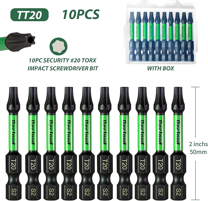 - 10 Pieces Screwdriver Bit Set: 10 Pieces 2 inches #20 torx driver bit Package with Organizer Case.