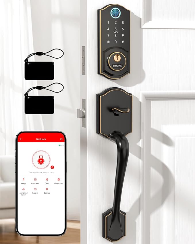 Smart Door Lock with Handle Set: SMONET Front Door Lock Set Keyless Entry Fingerprint Keypad Bluetooth Alexa Deadbolt Lockset Oil Rubbed Bronze