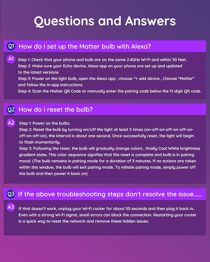 - 【Powerful Smart Matter】A Matter-certified hub (such as HomePod, Echo, or Nest) is required to control the Matter bulb in Apple Home, Alexa, or Google Home. Matter smart light bulb is compatible with all Matter platforms.(Tips: Only supports 2.4GHz WiFi , not compatible with 5GHz)