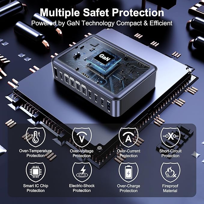 - Advanced GaN Ⅲ Pro Technology: The 710W USB C charging block adopts GaN Ⅲ Pro chip technology, and built-in multi-protection system and premium microchips, realizes more efficient charging power with smaller volume and lower heat generation, provides multiple protection and it will stop charging automatically when the battery is full to ensure the safety of devices and prolong the service life