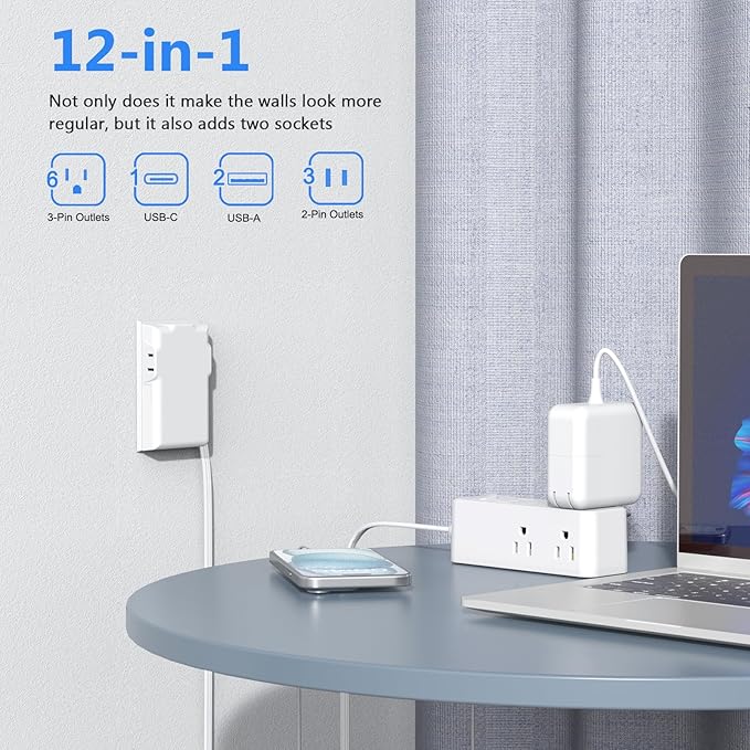 - 【Wide Space Outlets & Travel Ready】3-side design and each AC outlets with 1.6 inches space in between, makes it enough to fit big adapters without blocking each other. The compact size takes up less space on your desk or luggage, a must have accessories for travel, colleague dorm room, home, office, bedroom, kitchen and etc.