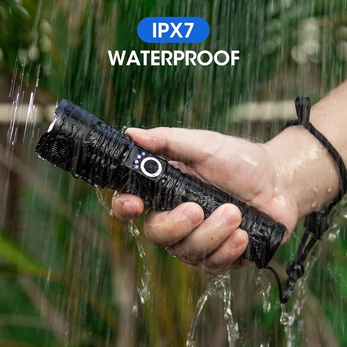 - IPX7 Waterproof - If you use a flashlight outdoors, you don't have to worry that it will be affected by rain during normal use
