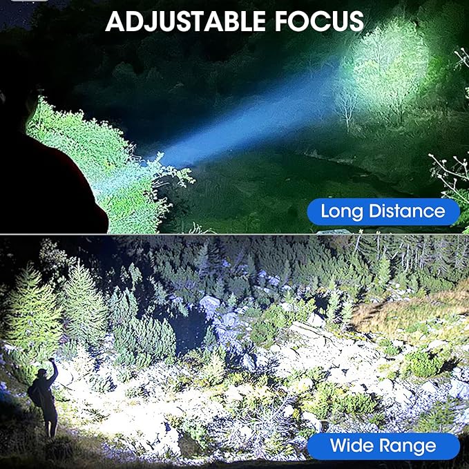 - Adjusatble - Our strong light handheld flashlights can be adjusted to illuminate distance and range, by adjusting the lamp holder, you can illuminate a target up to 3280 feet, and illuminate a range of up to 2152 square feet
