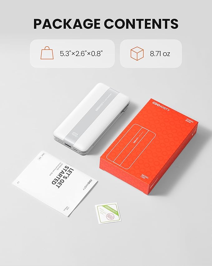 - 【Foldable AC Wall Plug and Built-in Cables】Your All-in-One Charging Solution. One Coowisty portable charger is all you need on the go—say goodbye to tangled cables and bulky adapters. Equipped with a foldable AC wall plug, 2 built-in cables (usb-c & compatible with iphone devices), and 2 ports (USB-C + USB-A), it’s versatile enough to meet most of your daily charging needs.