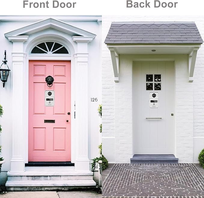 - 2 UNIT 1080P FULL HD CAMERAS AND TOUCH MONITOR: 7-inch TFT touch monitor with ultra-slim design, supports Smart Touya APP wireless WiFi, hands-free intercom. 1080P HD camera, 140o wide angle with rain cover, built-in speaker and microphone, built-in infrared sensor, infrared night vision, rain, dust and vandalism resistant.2 unit 2 megapixel HD cameras, front and back doors are clearly visible, all-round protection for home security