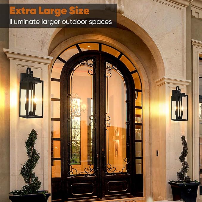 - All-Weather Resistant: This exterior lighting fixture is crafted from durable metal and sturdy glass, designed to withstand all weather conditions—from sun and snow to rain and ice. Unlike inferior outdoor lights, our outdoor light fixture features high-quality metal construction that resists rust and corrosion, ensuring lasting durability and brightness year after year