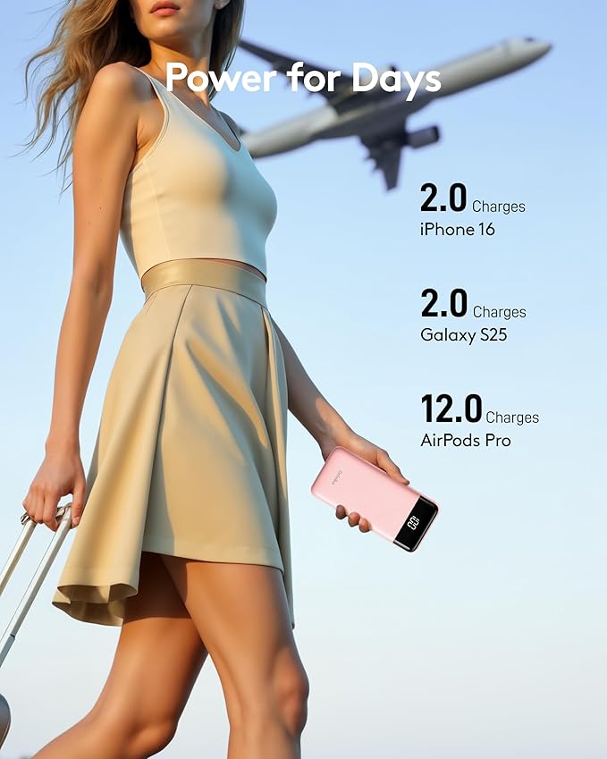 - 【Ultra-Slim & Travel-Ready Portable Charger】 Engineered to be as think as a smartphone (0.59in) and lighter than a soda can (8.4oz), this pocket-sized power bank slips easily into bags, pockets, or purses for on-the-go convenience.