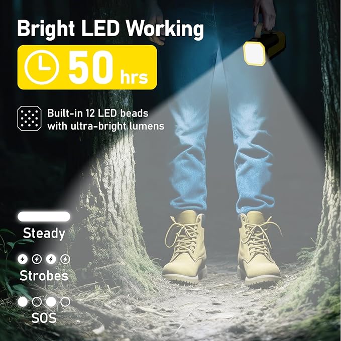 - Ultra-Bright LED Flashlight with SOS:Featuring 12 ultra-bright LED beads with adjustable brightness and SOS mode, this LED flashlight power bank is perfect for camping, hiking, night work, or emergencies.