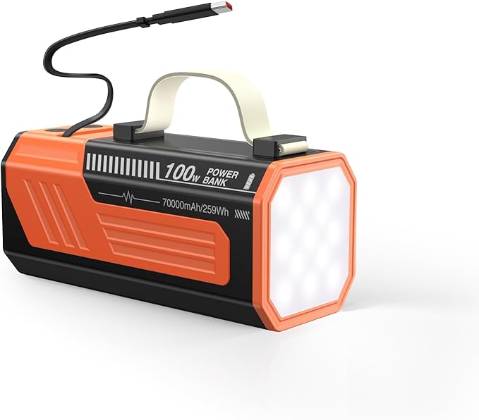 - 100W Fast Input:This high-capacity power bank supports 100W fast input via the USB-C port and 60W fast input via the built-in USB-C cable, solving the problem of long charging times for large batteries. So even a 70,000mAh high capacity portable charger can be fully recharged in hours