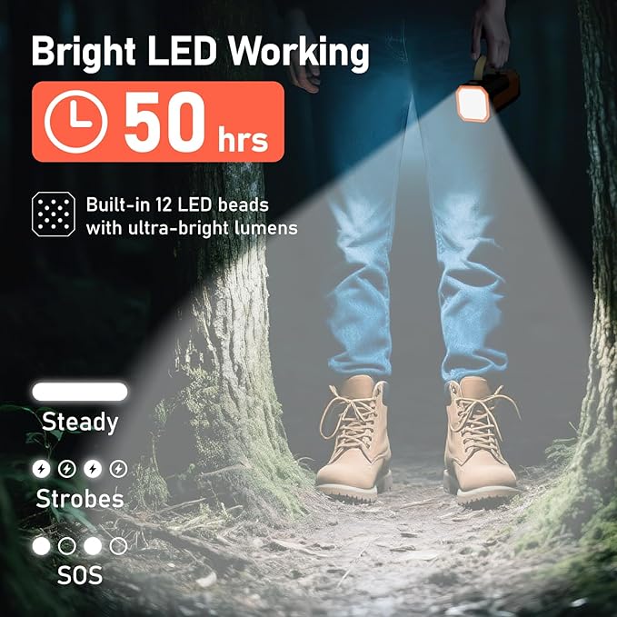 - Ultra-Bright LED Flashlight with SOS:Featuring 12 ultra-bright LED beads with adjustable brightness and SOS mode, this LED flashlight power bank is perfect for camping, hiking, night work, or emergencies.